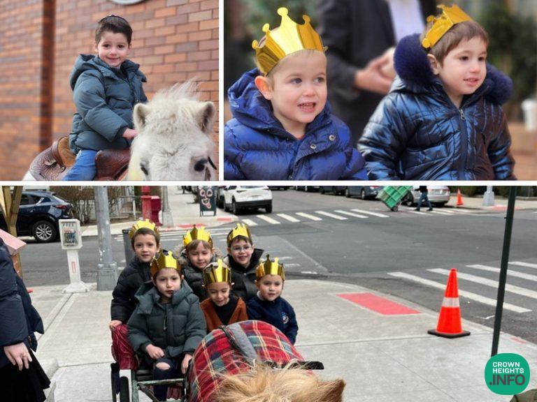 On Wednesday, a pony and wagon ride visited Lubavitcher Yeshiva Preschool. The yingelach put on a crown and rode like Mordechai on the king’s royal horse.