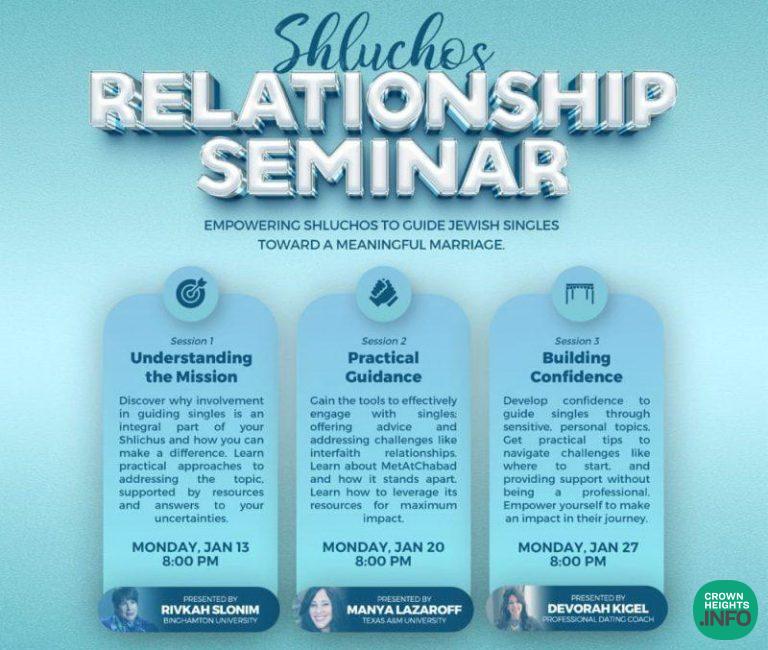 Tonight Shlucha and dating coach Mrs. Manya Lazaroff, will lead the second session of Met@Chabad’s Shluchos Relationship Seminar, sharing practical tools for Shluchos mentoring singles as they navigate dating and marriage.