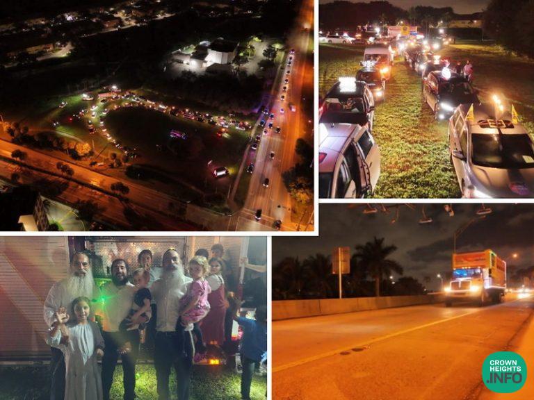On the 6th night of Chanukah, nearly 60 Menorah cars took to the streets and highways of South Florida to parade the light of Chanukah departing from Chabad of Inverrary making a 33 mile loop around Broward County before returning to Chabad of Inverrary.