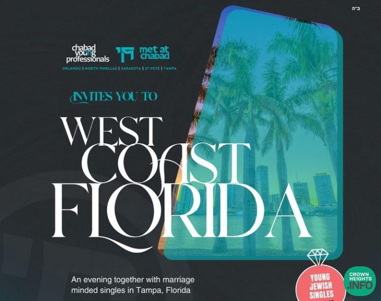 Marriage-minded young Jewish professionals will gather this week for a first-of-its-kind dating event on Florida’s West Coast. Spearheaded by local Chabad Young Professional Shluchim, in collaboration with Merkos 302’s Met@Chabad, the event will use cutting-edge technology to pair young Jews with potential soulmates and feature guidance from acclaimed Shadchan and Shluchah Mrs. Chani Lebovics.