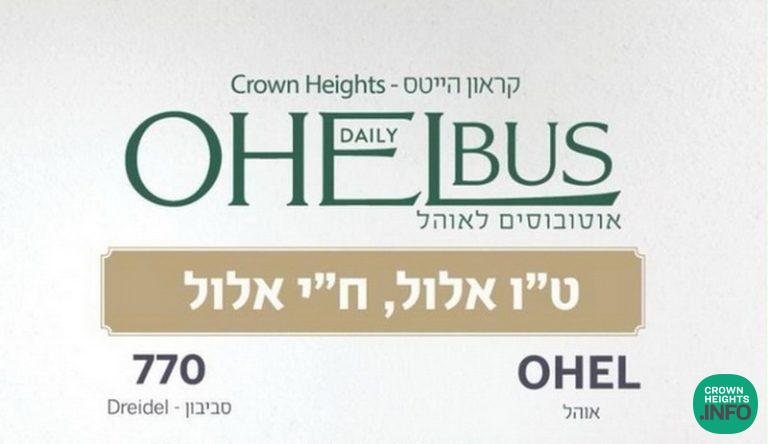 For the auspicious days of Tes Vov and Chai Elul, the Ohel Bus Service will be providing extra subsidized transportation round-trip from Crown Heights to the Ohel on Monday, Tes Vov Elul, and Thursday, Chai Elul.
