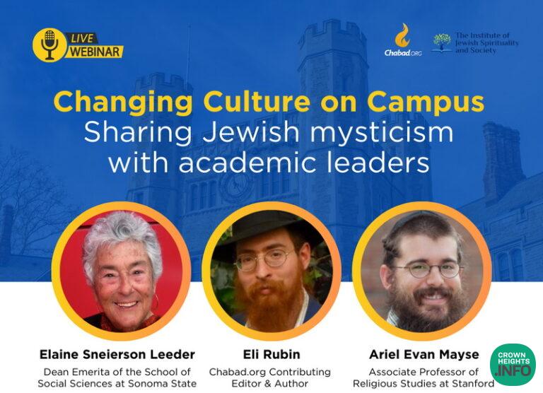 This coming Monday at 8:00pm, Chabad.org and the Institute of Jewish Spirituality & Society will be hosting a live online webinar on the topic of changing culture on campus.