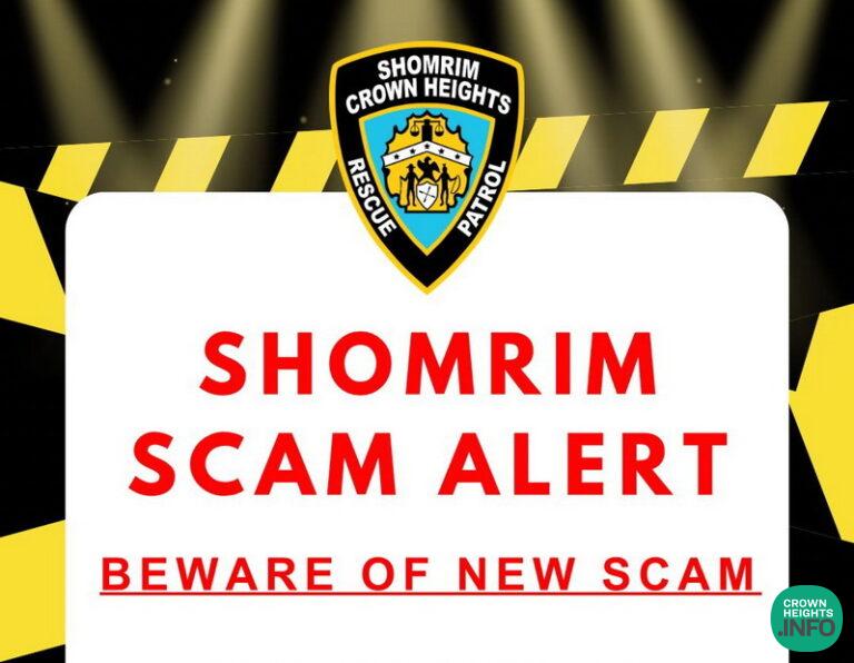 Crown Heights Shomrim has published an alert to the Jewish community after an old scam, with a new spin, has been reported in the community.