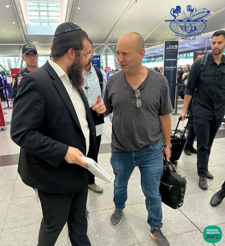 Former Prime Minister Naftali Bennett stopped by Chabad of the Airport to show his support and gratitude for their work.