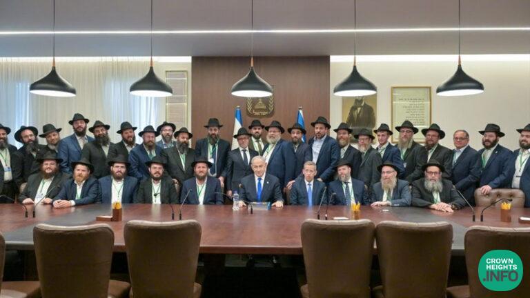 Prime Minister Benjamin Netanyahu on Wednesday, July 10 2024 at the Prime Minister’s Office in Jerusalem met with Chabad emissaries from Israel and around the world to mark 30 years since the passing of the Lubavitcher Rebbe.