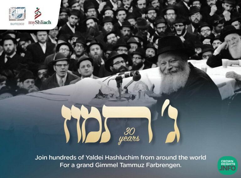 Marking Gimmel Tammuz, hundreds of Yaldei Hashluchim across the globe will unite today for a Virtual Farbrengen. The Fabrengen, organized by the MyShliach Team at Merkos 302, aims to inspire and uplift young shluchim on the front lines of the Rebbe’s Shlichus on this auspicious day.