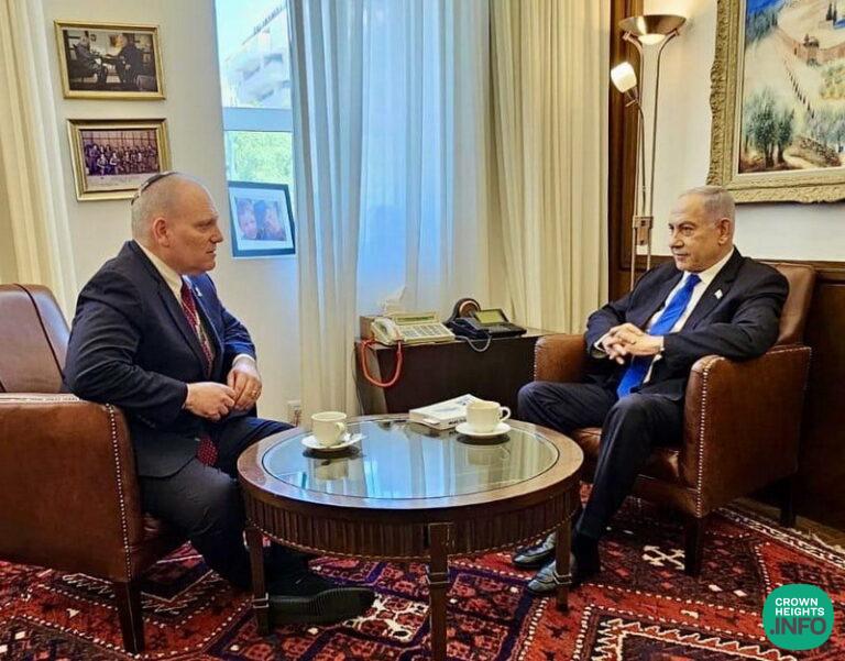 In a meeting at the Prime Minister’s Office in Jerusalem with William Daroff, CEO of the Conference of Presidents of Major American Jewish Organizations, Israeli Prime Minister Benjamin Netanyahu was seen with a copy of the new book “Make Peace,” which explores the Lubavitcher Rebbe’s vision for achieving lasting peace in Israel.