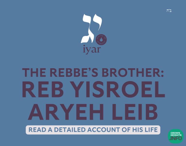 The 13th of Iyar is the day of the passing of R’ Yisroel Aryeh Leib, third son of the Rabbi and Mekubal R’ Levi Yitzchok and Rebbetzin Chana Schneersohn and brother of our Rebbe. The Yagdil Torah organization has compiled a publication with Mishnayos, selected stories, and rare correspondents of R’ Yisroel Aryeh Leib in honor of Yud Gimmel Iyar.