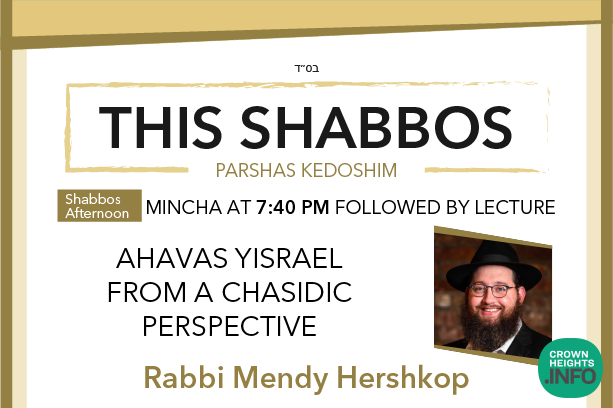 Shabbos at the BESHT: Rabbi Mendy Hershkop is the Sgan Menahel of the Oholei Torah Mechina Division. He will be giving this week’s Shiur on Ahavas Yisrael from a chasidic perspective.