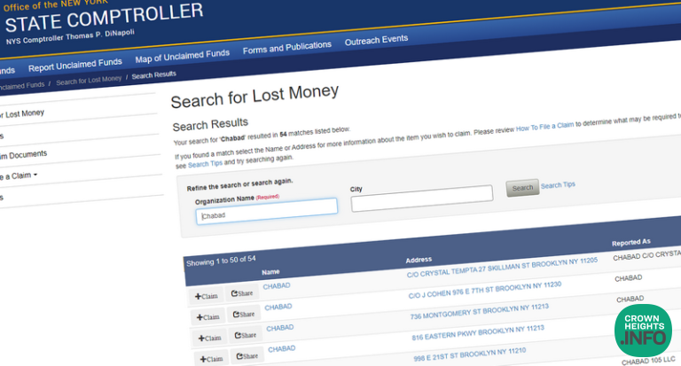 Comptrollers Office Continues To Find Your Lost Money, Search For “Chabad” Has 54 Hits