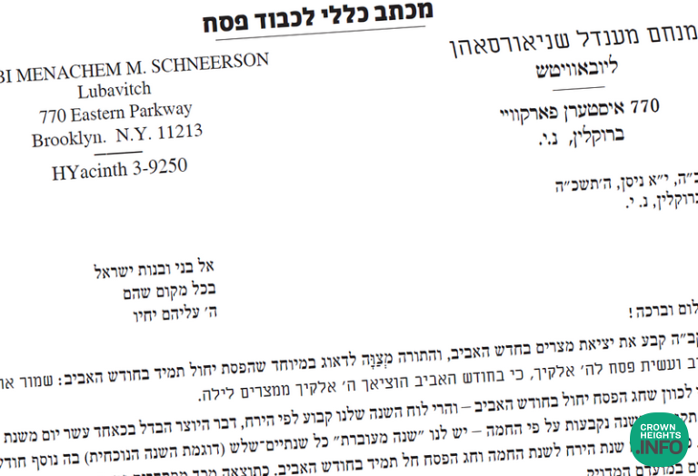Michtav Kloli From The Rebbe Made Available For Yud Aleph Nissan