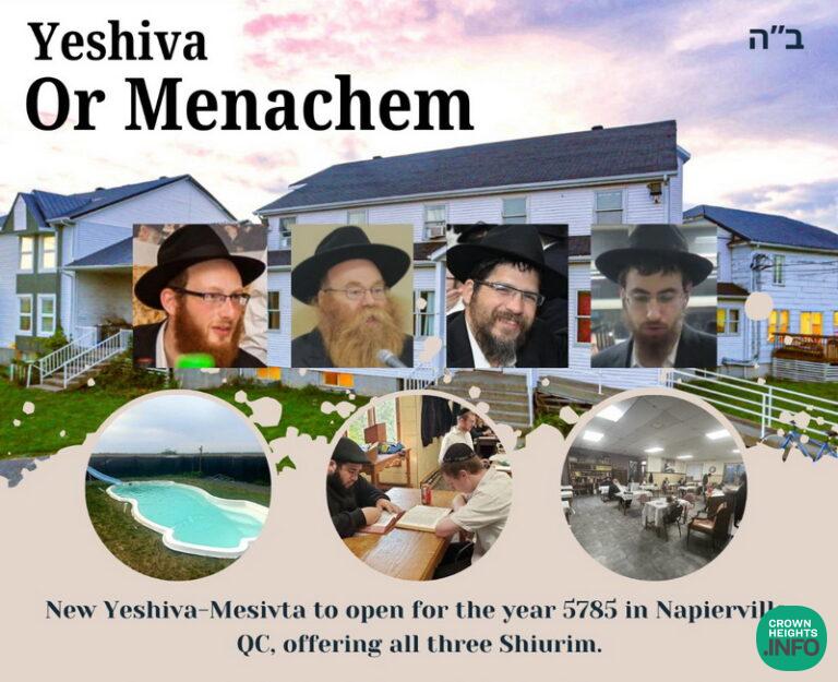 As the Lubavitcher community B”H continues to grow each year, the need for more and and quality Yeshivos grows exponentially as well. In an effort to fill that need, we are proud to announce the opening of a new Yeshiva-Mesivta in Napierville, QC.