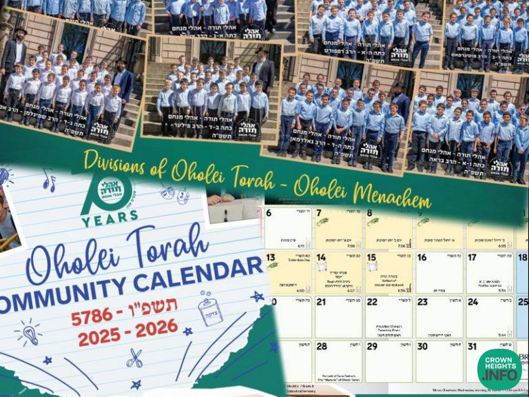We are happy to announce that the 5786 / 2025-26 Oholei Torah Community Calendar is now available free of charge at your local Crown Heights stores and at the Yeshiva’s main office.
