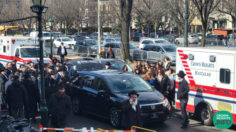The Levaya for Mrs. Pesha Levertov OBM passed by 770 Monday. Mrs. Levertov was a Crown Heights resident and matriarch of a large Lubavitch family. She passed away on Sunday, the 16th of Adar 1, 5784.