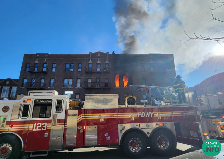 A fire broke out at 1622 President Street, located between Utica Ave and Schenectady Ave, bringing fire department apparatus rushing to the scene.