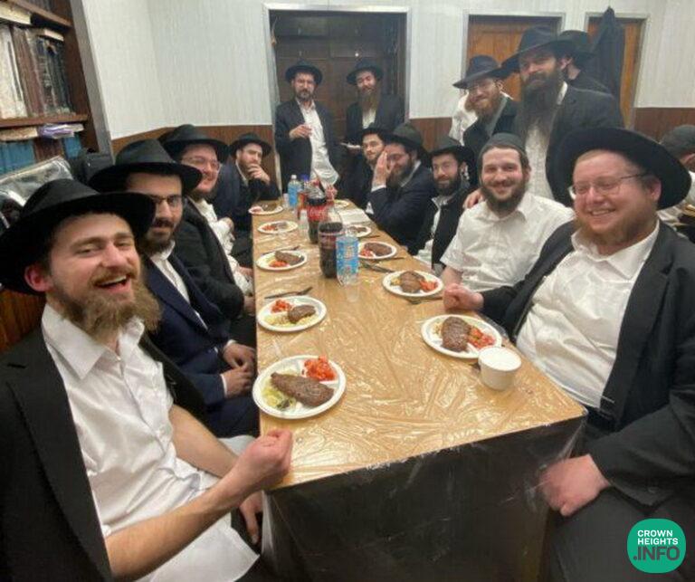 Bochurim of 770 Enjoy Delayed Melaveh Malkah in Connection with Gemach
