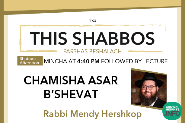 Shabbos at the BESHT: Rabbi Mendy Hershkop is the Sgan Menahel of the Oholei Torah Mechina Division. He will be giving this week’s shiur on Chamisha Asar B’shevat