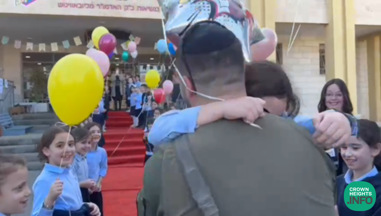 Watch this touching video as IDF soldier Menachem Taib returns home after fighting for 70 days and is welcomed by his daughter and her friends at their school in Kfar Chabad.