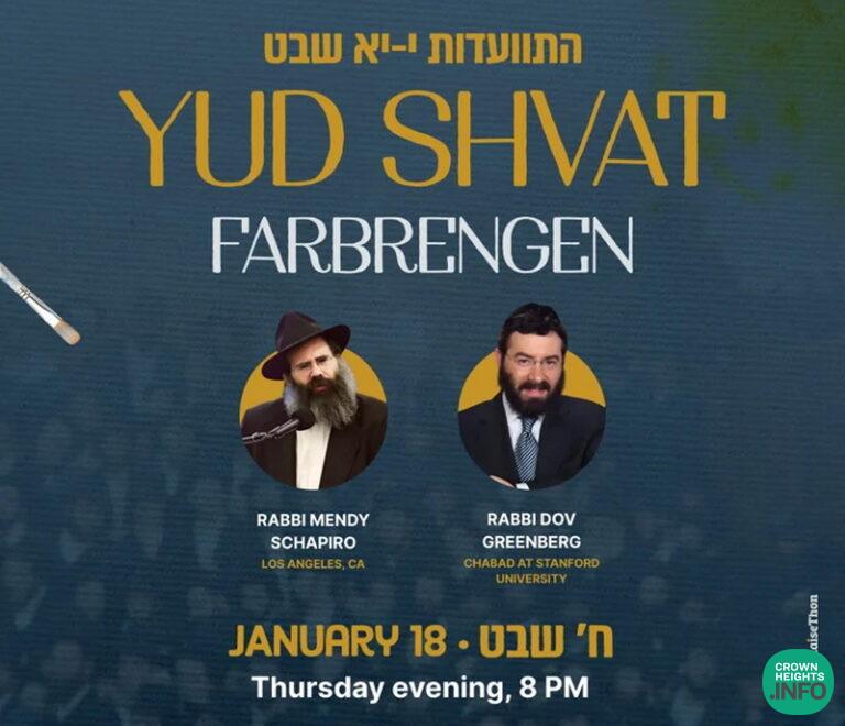 Join a live broadcast of an inspiring farbrengen in honor of Yud Shevat—hosted by NCFJE, The National Committee for Furtherance of Jewish Education. The program will feature Rabbi Mendy Schapiro and Rabbi Dov Greenberg, and heartfelt Nigunim led by Boruch Sholom Blesofsky.
