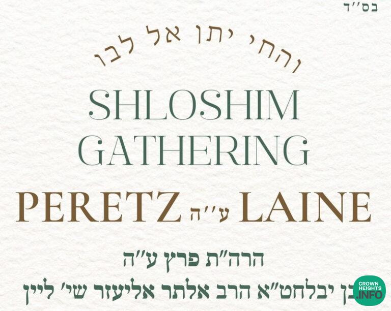 Shloshim Event To Be Held For R’ Peretz Laine OBM