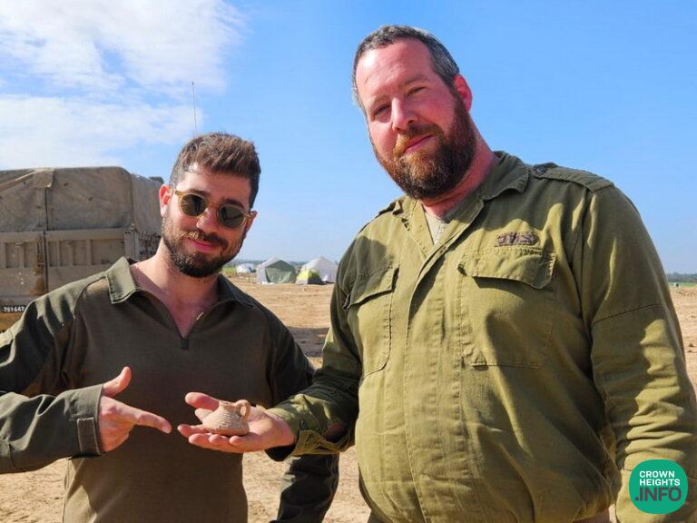 Nathaniel Melchior and Alon Segev, two reserve soldiers in the 404th Battalion of the 282nd Fire Brigade, did not expect this on their reserve service: they discovered an intact ancient oil lamp dating from the Byzantine period.