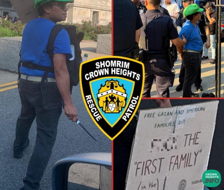 A crazed Gaza protester dressed like Luigi took his victim, and responding Shomrim volunteers, for a walk Sunday before being apprehended by the police.