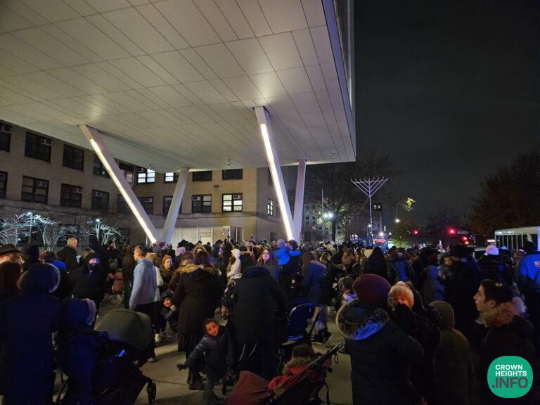 A record crowd gathered at SUNY Downstate Thursday night for a public Menorah lighting on the first night of Chanukah.