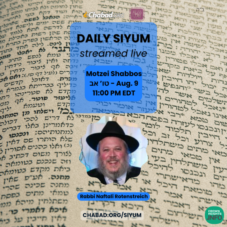 Nine Days Daily Siyum – Live Broadcast at 11:00pm