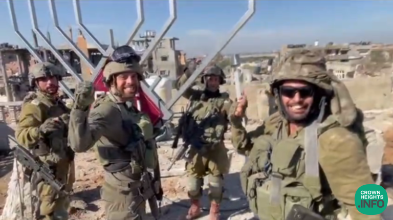 Watch as a group of IDF soldiers, led by a Chabad soldier, puts up a Menorah on a building in northern Gaza. The effort is being made to brighten the world as the IDF soldiers in Gaza face a difficult Chanuka.