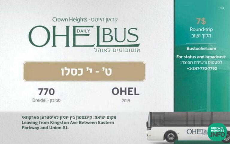 The Ohel Bus Service will be providing subsidized transportation round trip from Crown Heights to the Ohel for Tes and Yud Kislev.