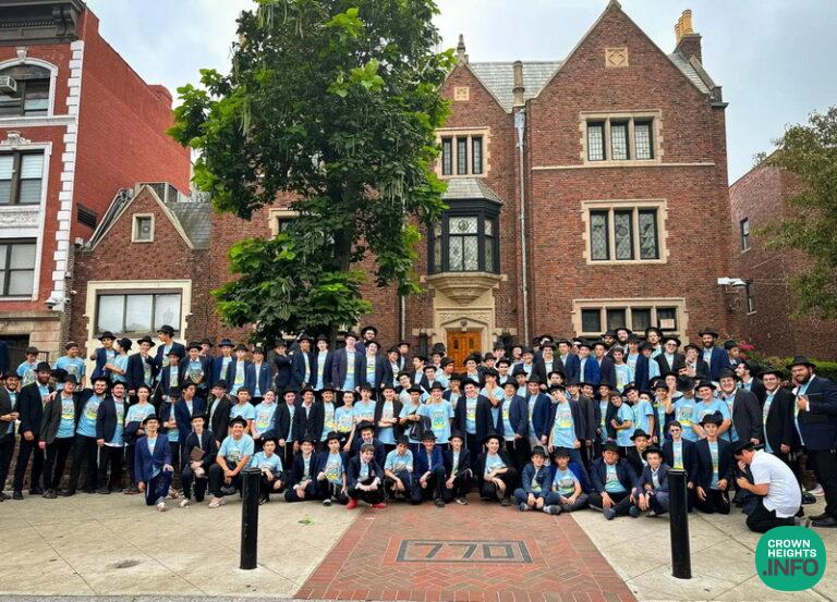 During their visit to Crown Heights over Chof Av, the Bar Mitzvah Division of Camp Gan Israel-Parksville took a group photo in front of 770.