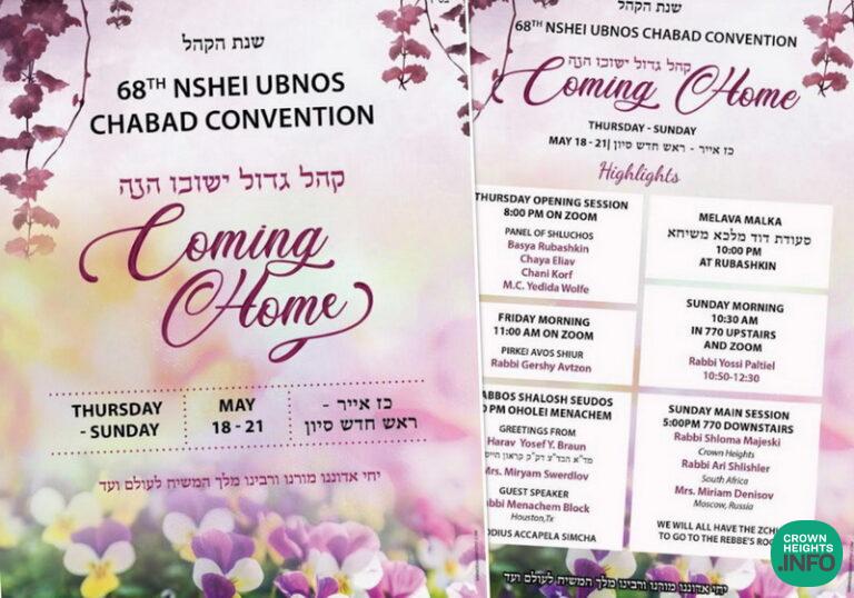 This year, the theme of the convention will be “Coming Home”, with the convention taking place from Thursday, May 18th to Sunday, May 21st in Crown Heights.