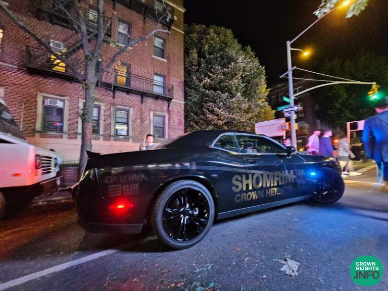 During the first night of Chol Hamoed Sukkos, Shomrim rolled out its newest addition, a Dodge Challenger vehicle, fully illuminated with lights and sirens and sporting “ghost” decals.