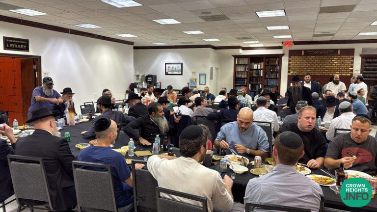 Chassidim gathered at Bais Levy Yitzchak of Pomona, NY for a Grand Gimmel Tammuz Farbrengen led by Rabbi Oshy Deren from Cape Town, South Africa and Rabbi Nosson Gurary, the legendary campus Shliach.