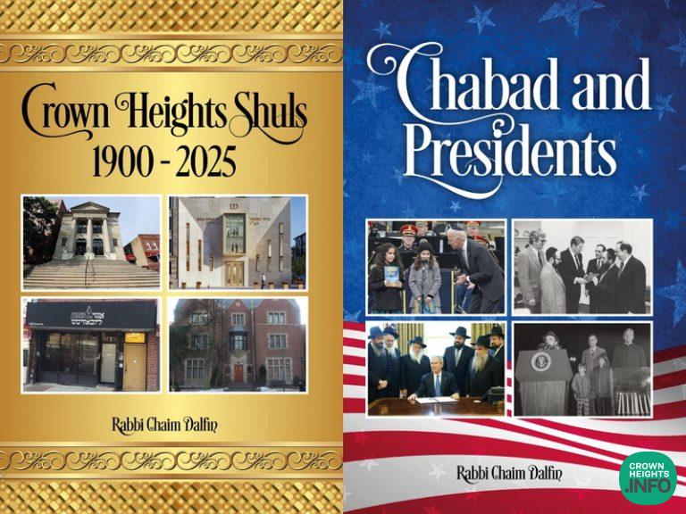 Two new books have been released by Rabbi Chaim Dalfin in honor of Gimmel Tammuz. Crown Heights Shuls: 1900-2025, and Chabad and Presidents, are both now available for purchase.