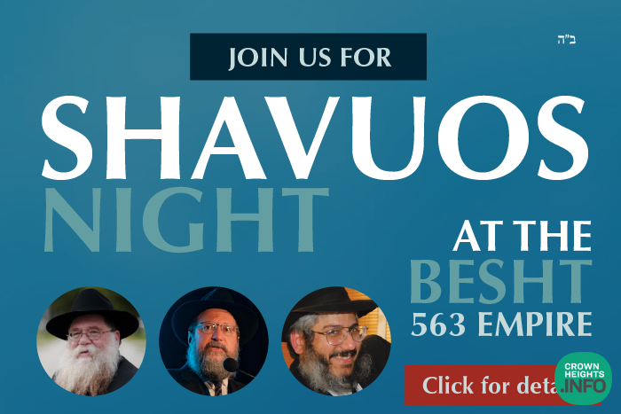 As is the custom, Shiurim, learning, and lectures will be taking place throughout the night at The BESHT Center in Crown Heights on the first night of Shavuos.