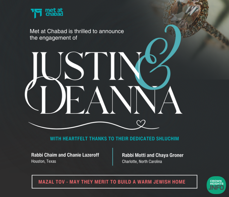 A new engagement through Met@Chabad is bringing together two Jewish professionals from Houston, TX, and Charlotte, NC, highlighting the growing number of cross-community shidduchim facilitated by local Shluchim and Met@Chabad.