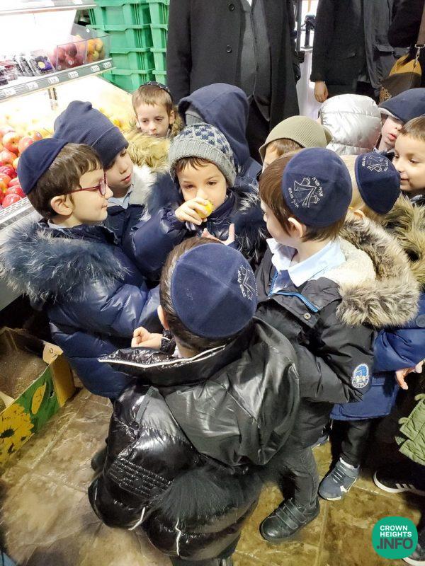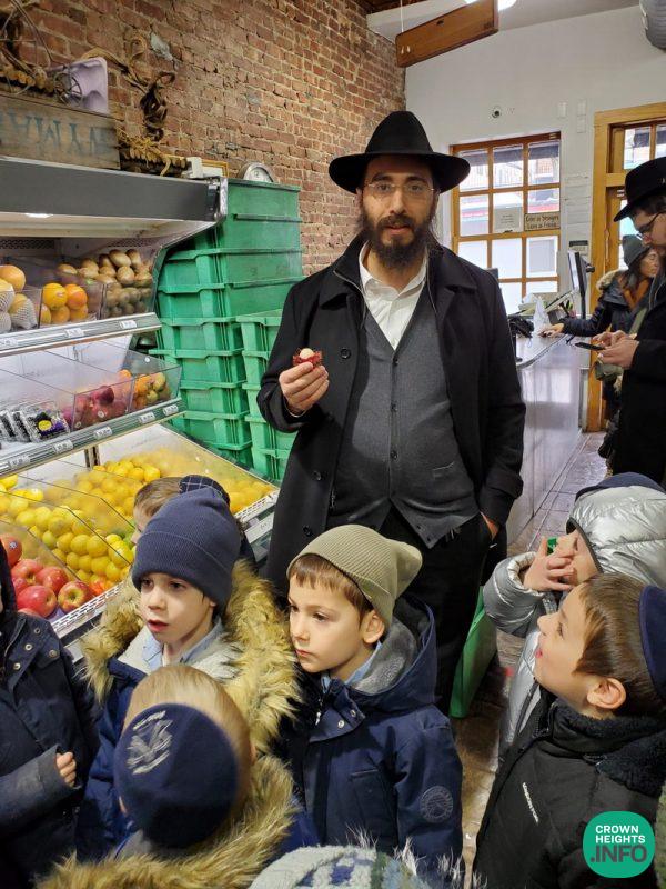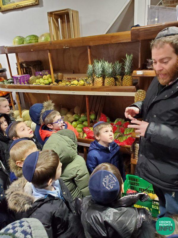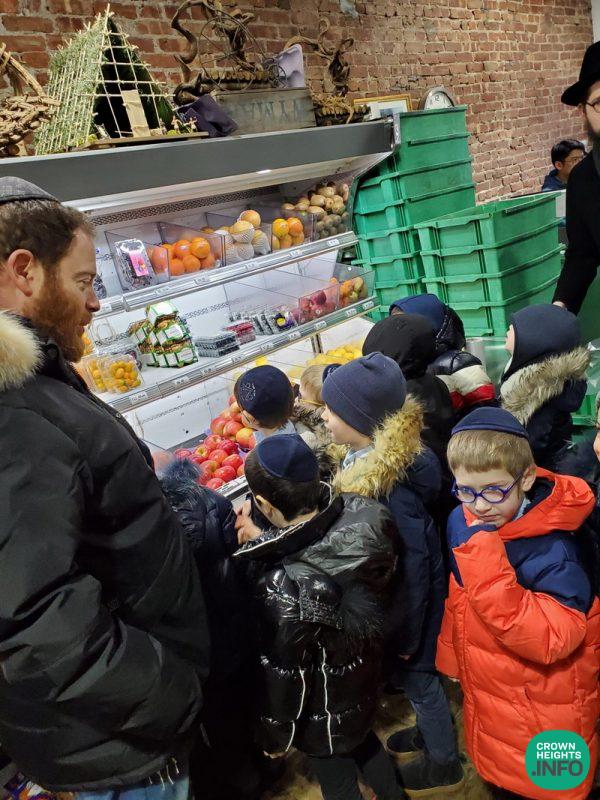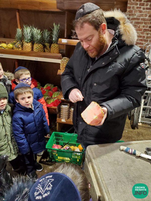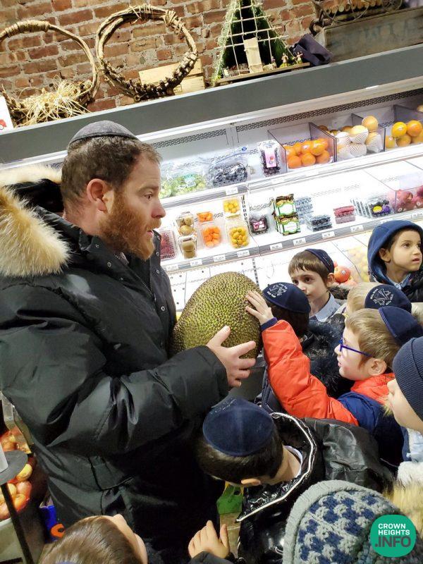 Oholei Torah students from Rabbi Barnett’s class were treated today to a tour of all the unique and exotic fruits that arrived at Mr. Greens fruit and vegetable store in honor of Tu B’shvat, which will be this Monday.