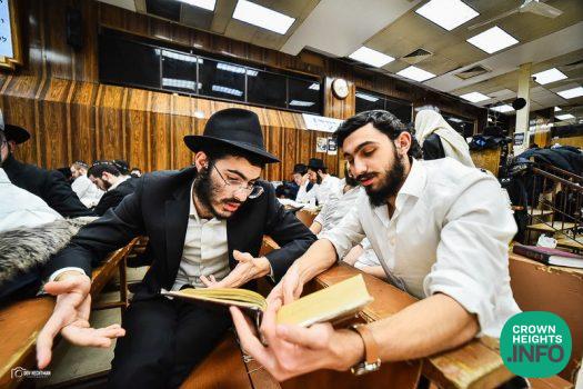Hundreds of Bochurim In 770 Learn Chassidus As Part of Yud Aleph Nissan Mivtza