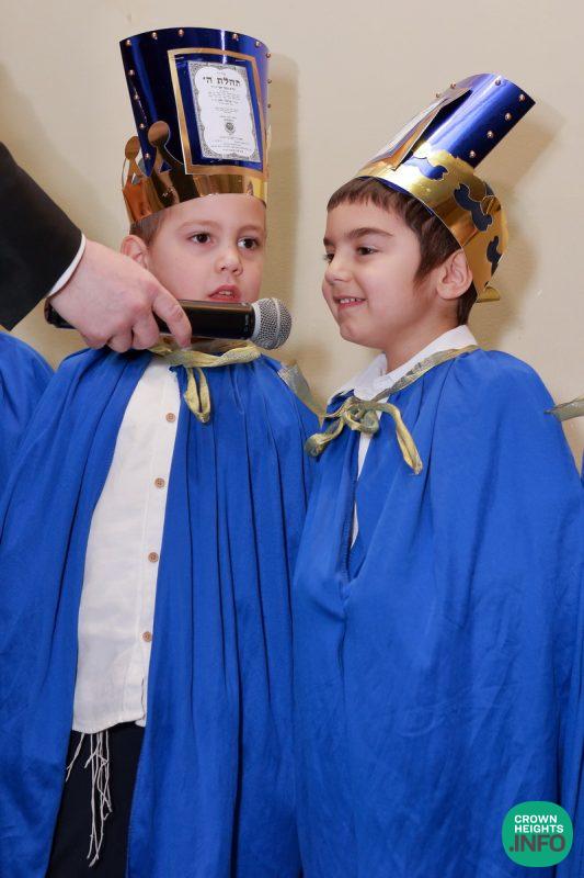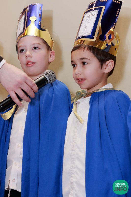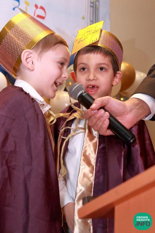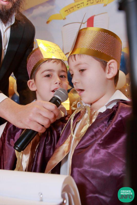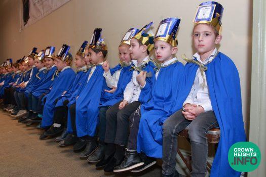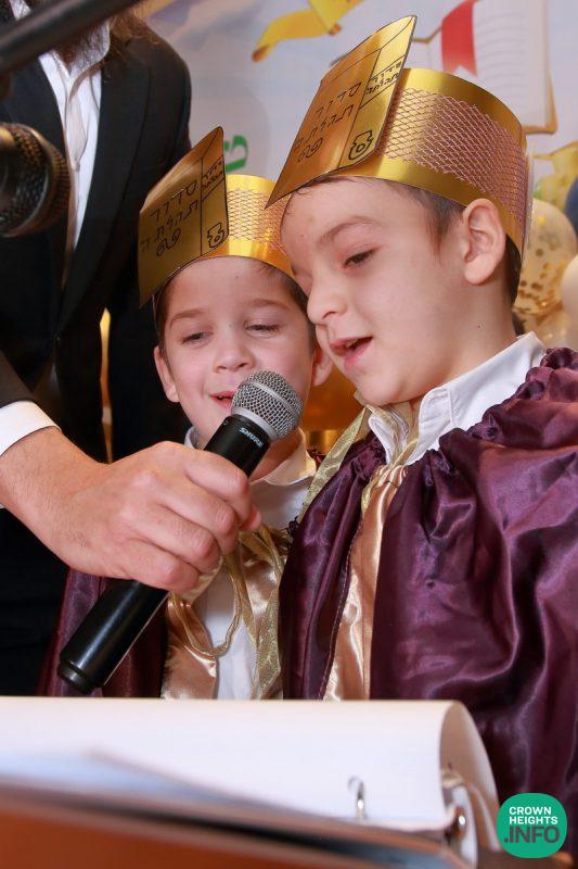 The parties were the culmination of the boys completing their learning of the Aleph Beis, and parents, family members, and friends watched on in the crowd in celebration of this important achievement.