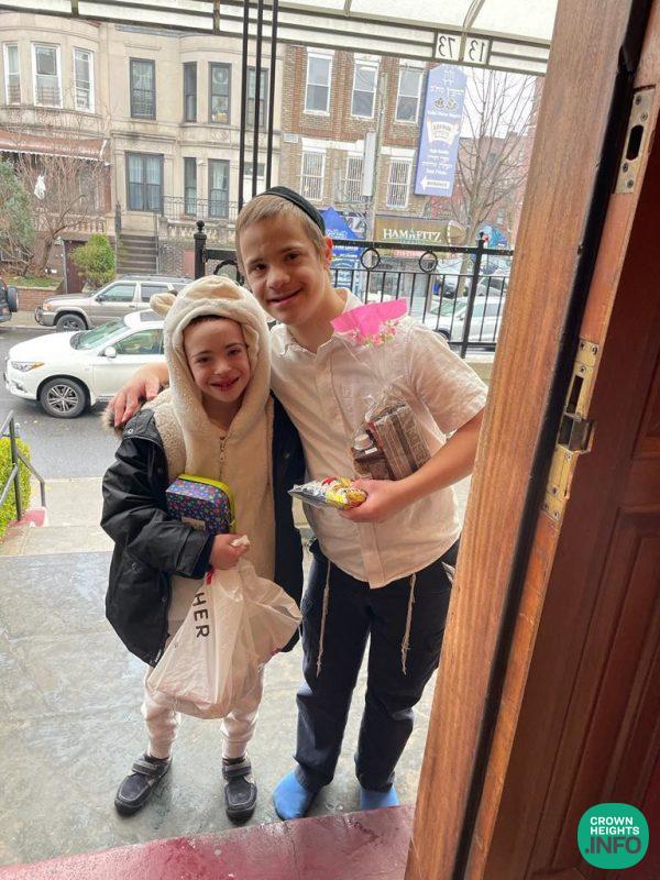 But for me, that call was the most loving, heartfelt one. You see, my child has Special Needs and does not necessarily receive Shalach Manos on Purim day. He watches as his many siblings are busy with deliveries and friends visiting, he sees and feels the hustle and bustle on the streets in Crown Heights. That phone call meant something incredible to me. It meant that this year Purim, my son would be part of the festivities too. Throughout Purim day he was b-u-s-y with visitors! Mainstream children, his age, who had been paired up with him through Friendship Circle’s Uplift Program; volunteers that visit him during the year; and Bochurim and staff of the Friendship Circle; came to dance with him and bring joy.