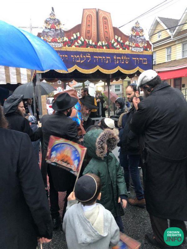 Thanks to the help of the NYPD 67th Precinct, Remsen Ave was shut down to facilitate the procession, creating a big kiddush hashem as the community’s neighbors were able to witness the joyous occasion.