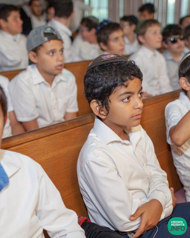 Following an introduction by camp’s Learning Director Mendel Deitsch the campers were congratulated on their collective summer achievements – camp’s gift to the Rebbe: 2 full Mesechtos, 118 Perakim Mishnayos, 1,439 Mishnas, 41 Perakim Tanya and 5,954 lines of Tanya.
