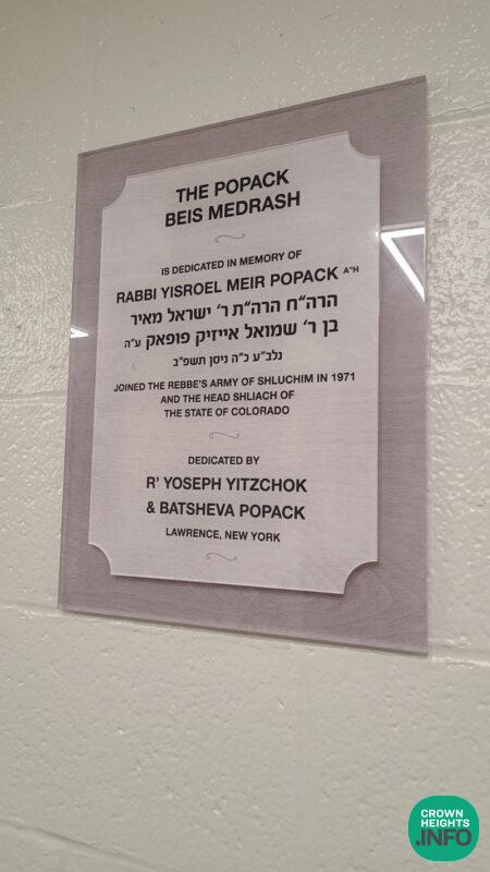 Oholei Torah recently hosted a heartfelt dedication ceremony at its newly opened Popack Beis Medrash on the Remsen Mesivta Campus. The event honored the memory of Rabbi Yisroel Meir Popack, a”h, who served as the Head Shliach to the State of Colorado.