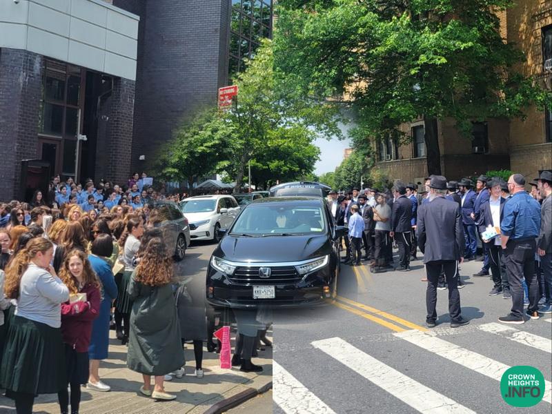 Hundreds of girls, staff, and administration lined Lefferts Ave Tuesday as they said farewell to Mrs. Ratza (Ray) Schildkraut OBM, a former teacher in Beis Rivkah who taught generations of 2nd graders.