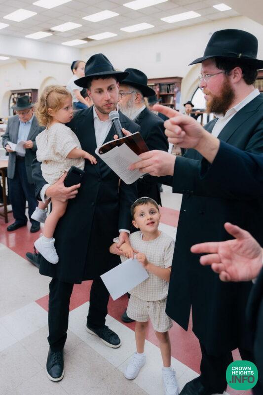 The following morning, the Sefer Torah was read from various minyonim, with the minhogim connected with reading a sefer torah the first time, and the talmidim received special treats after the shacharis minyan.