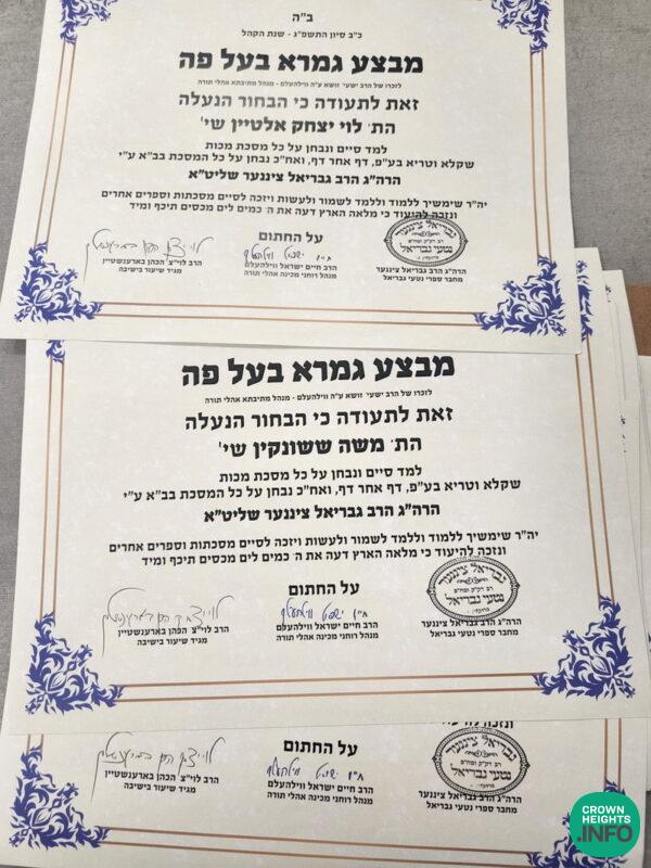 Rabbi Zinner pointed out that this project of the Talmidim learning Gemara Baal Peh and knowing it so well is a great Z’chus for Rabbi Zushe Wilhelm, a”h, as he started this project, motivating the bochurim to keep learning more and more, The Rov concluded by saying this is a special Hachana for Gimmel Tammuz to give the Rebbe lots of Nachas.
