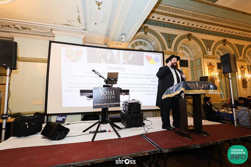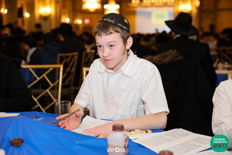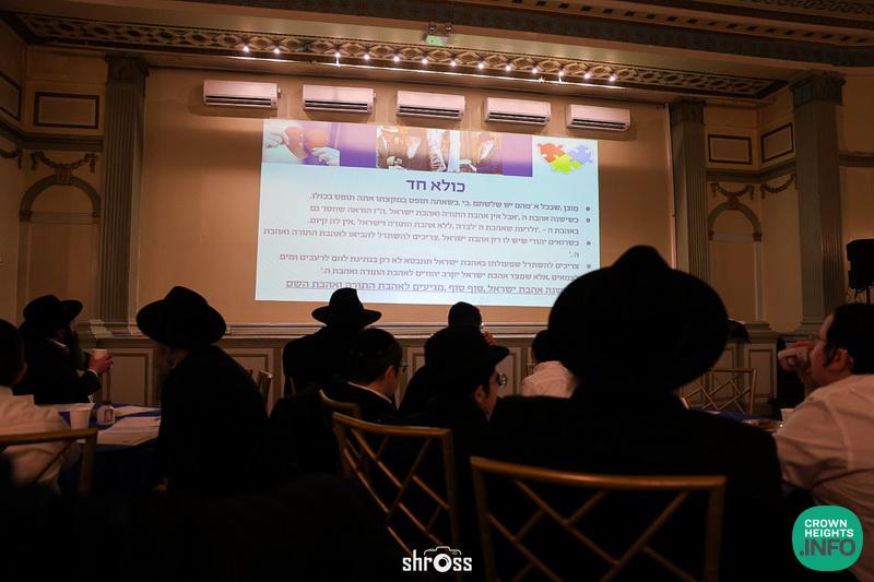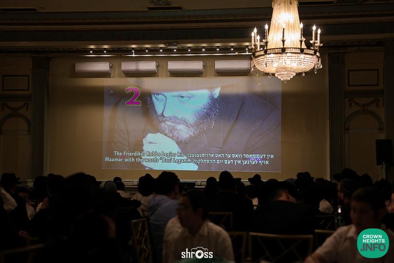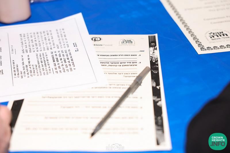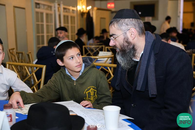 The farbrengen progressed with a video presentation of a segment from Basi L’gani, following which Talmidim and their fathers answered Connection Point questions on the Maamer and the Sicha. Rabbi Lustig then led the room in singing the Beinoni and Shamil Niggunim and reciting Tehillim for the safety of Eretz Yisrael.
