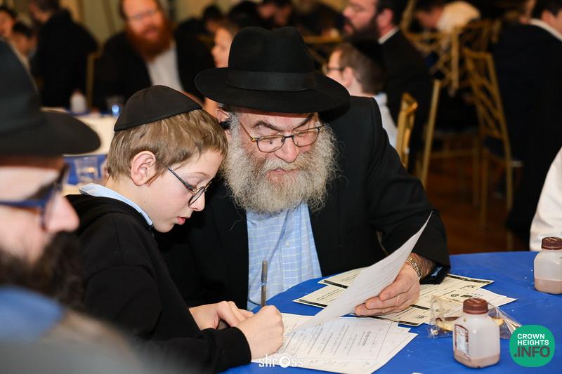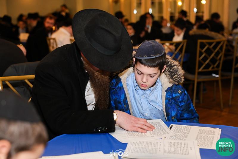 On Sunday, a gathering of enthusiastic fathers and sons of Oholei Torah’s sixth and seventh grade division took place to learn and farbreng in honor of Yud Shvat. The Oholei Torah ballroom welcomed participants with an inviting setup, comprehensive printed materials, and light refreshments.