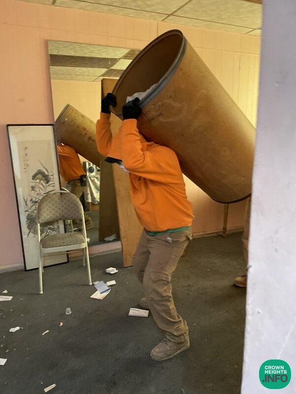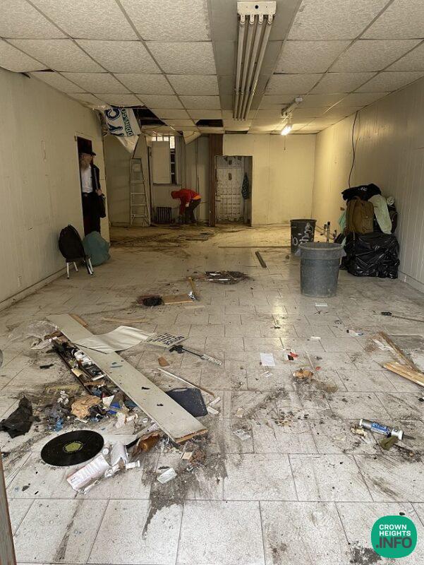 Crews were seen this morning clearing out the building recently purchased by Empire Shtiebel, this will I”yh make way for the future expansion of the Shul and Mikvah premises.